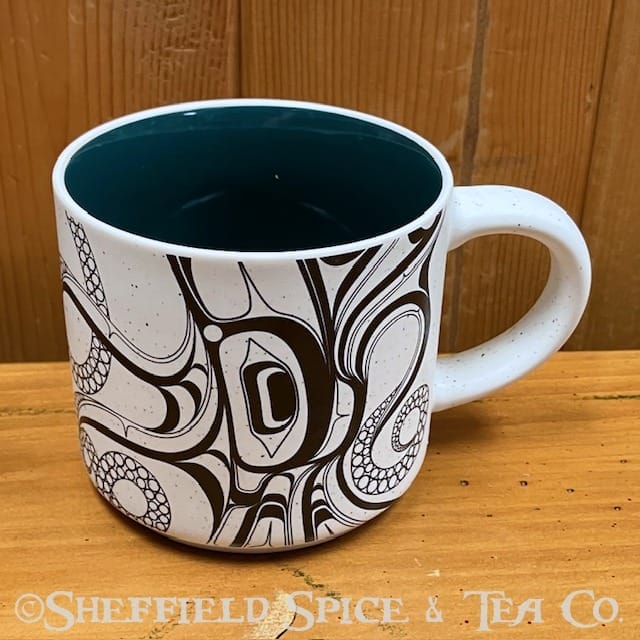 A Native Ceramic Mug is a showcase for the Native artist, whose art is being shared. They are part of a larger Native collection we have, which works with many indigenous artists from the New Mexico pueblos up through the Northwest peoples in Oregon, Washington and British Columbia. These artists are paid well for their artworks and whose thumbnail stories are on the product and/or the box so you know who you are enjoying.